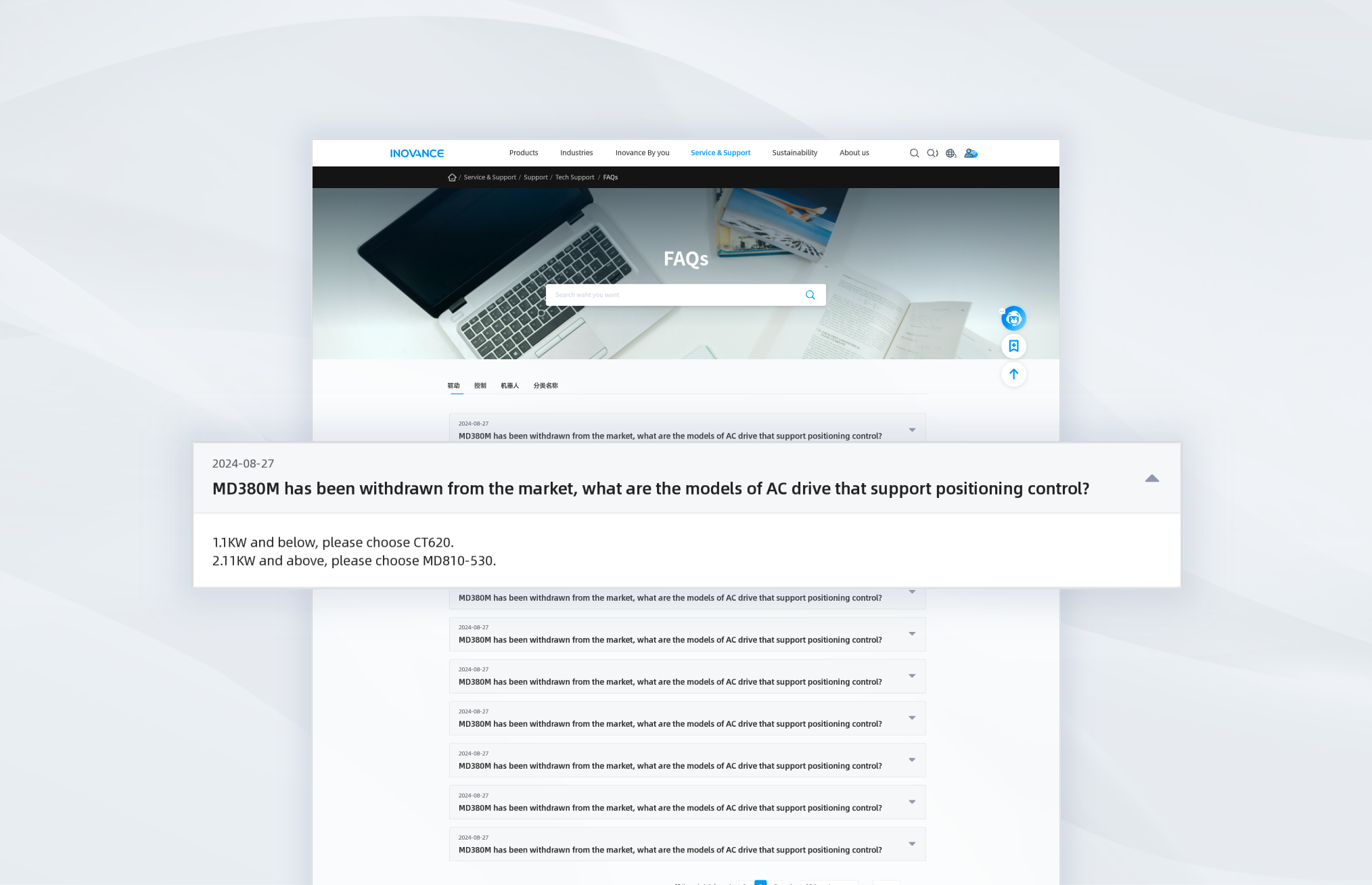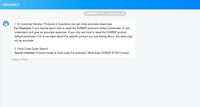 Intelligent customer service online chat, service experts' e-mail, hotline support, and self-service knowledge library to help you enjoy INOVANCE services.